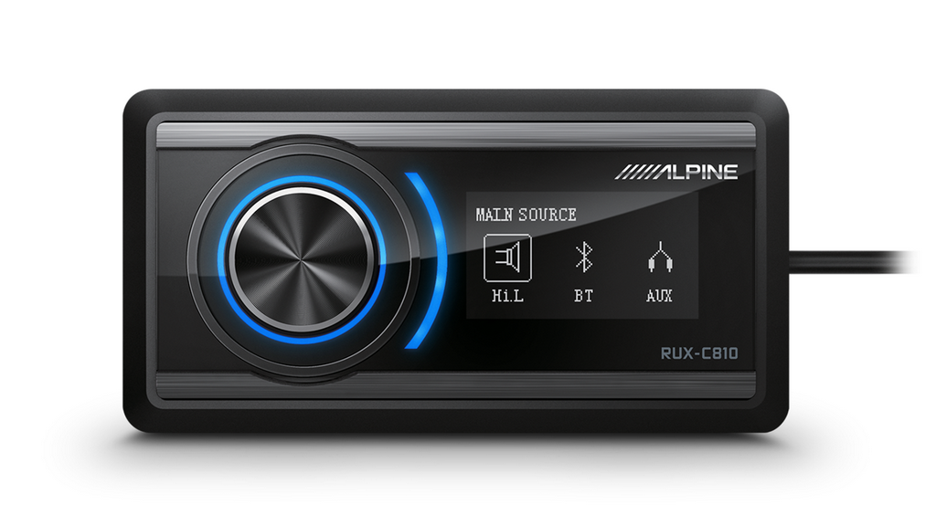 The RUX-C810 controller can be placed virtually anywhere and allows for users to access source selection and EQ presets, as well as adjustment of master volume and subwoofer level on the go. (RUX-C810 sold separately)