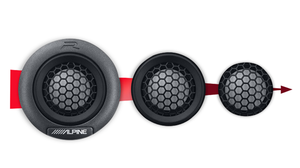 Alpine’s HAMR Surround (High-Amplitude Multi-Roll) allows for a maximum cone excursion, while maintaining excellent control. This results in strong bass at high volumes without distortion.
