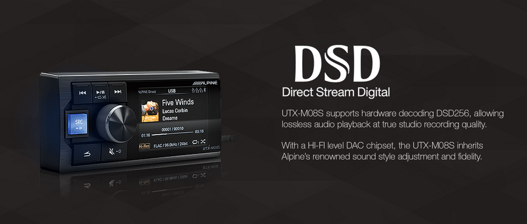 Furthermore, with the addition of an Alpine DSP (sold separately), the UTX-M08S can perform as a remote commander allowing full DSP control from the unit.