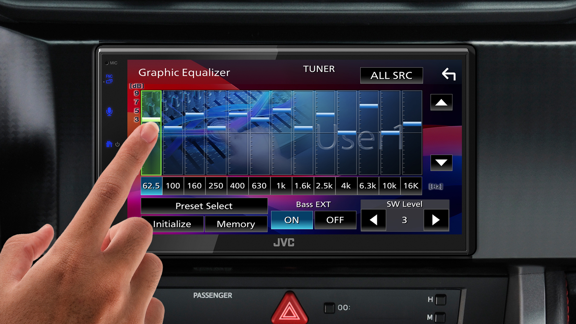 Just touch and move your finger over the screen for various operations corresponding to your finger-movements (for some sources, the Gesture Touch Control is not available). Intuitive control provides safer operation for in-car entertainment.