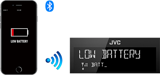 When the battery of the connected Bluetooth device runs low, a beep sound is heard and “LOW BATTERY” appears on the receiver.