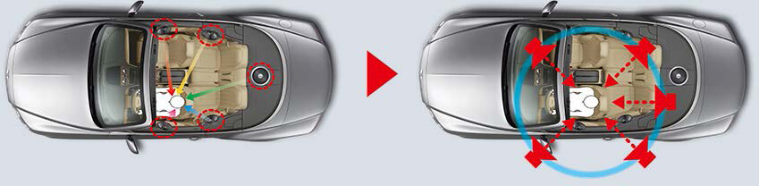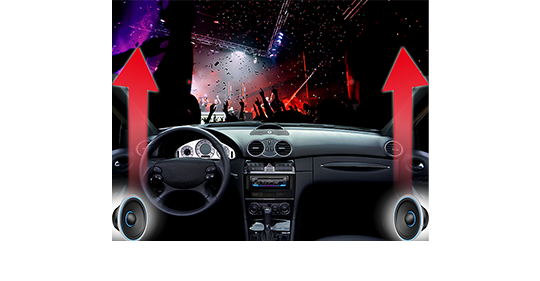 Space Enhancement is a virtual surround technology using 2 speakers. Simply select the vehicle size, and the receiver automatically adjusts the sound effectively.