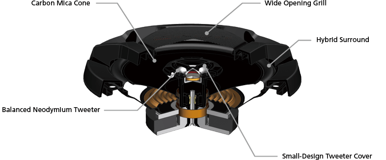 Robust and lightweight carbon mica material provides highly responsive, clear and undistorted reproduction.