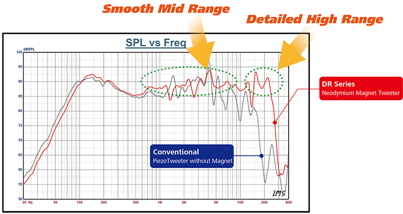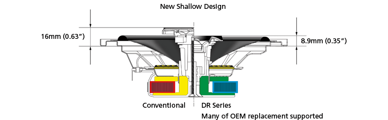 Newly developed small cover significantly reduces areas that interfere with the woofer cone. High-quality sound is assured.