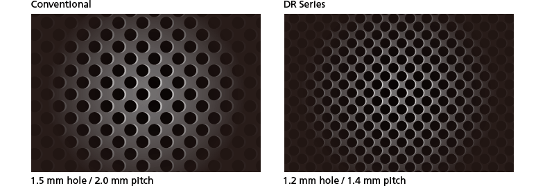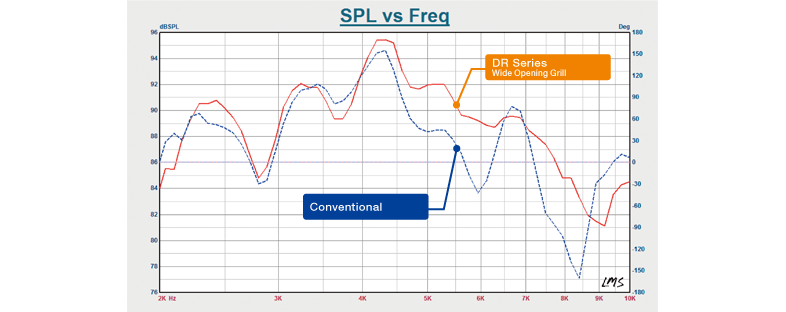 Grill’s opening ratio is 30% wider than the conventional model, enabling increased durability and clear sound.