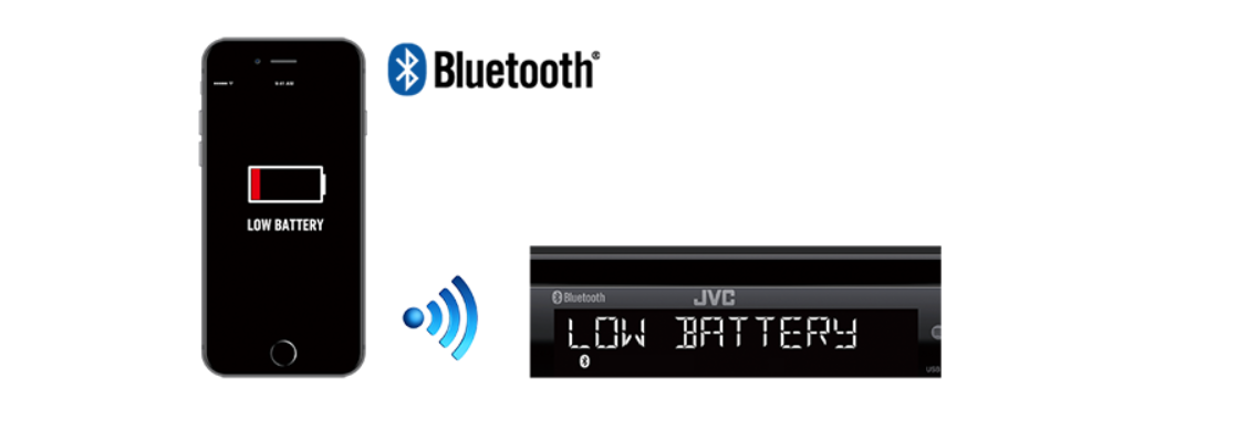 When the battery of the connected Bluetooth device runs low, a beep sound is heard, and “LOW BATTERY” appears on the receiver.