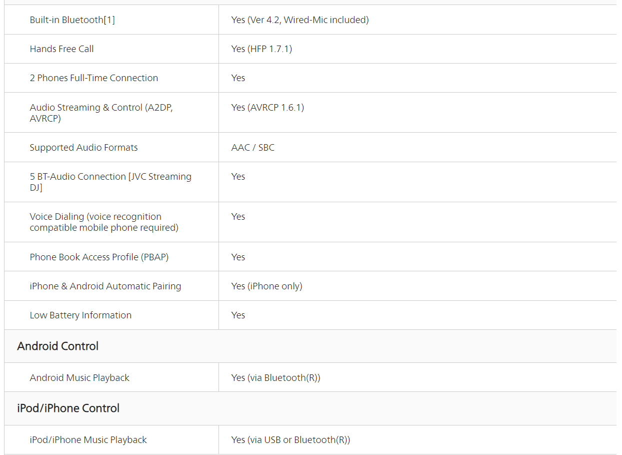 JVC KD-T952BT CD / Bluetooth / Aux