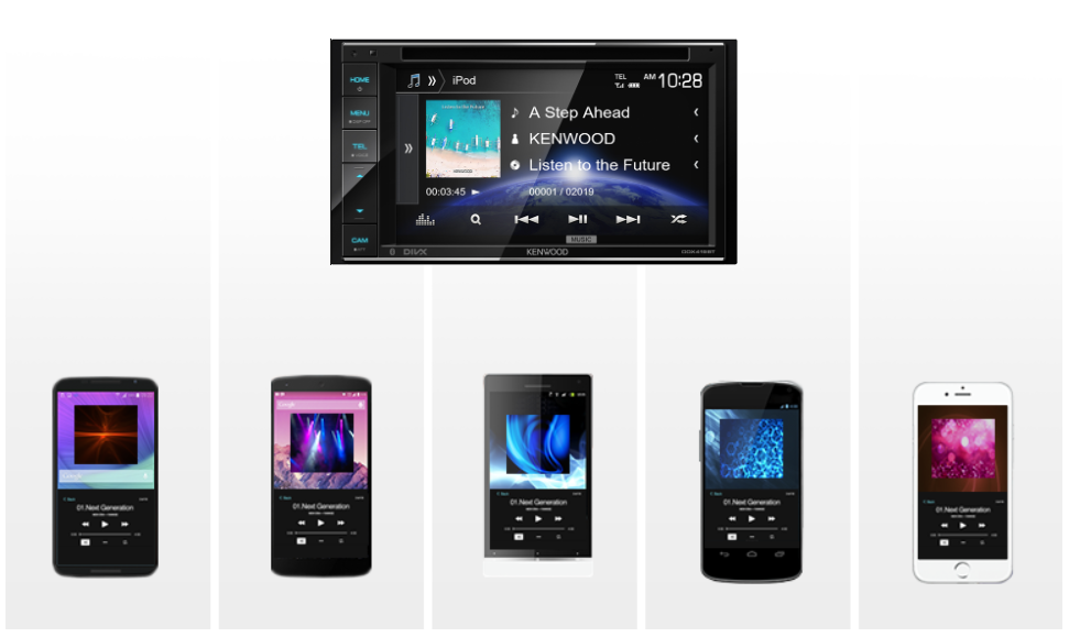 Up to 5 Bluetooth® devices can be paired to the head unit at the same time. You can enjoy audio streaming just by switching the devices among your friends.