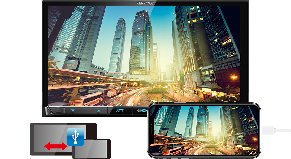 Before starting, just install the free app “Mirroring OA for KENWOOD” on your smartphone and connect it to KENWOOD receiver via a USB cable and Bluetooth.