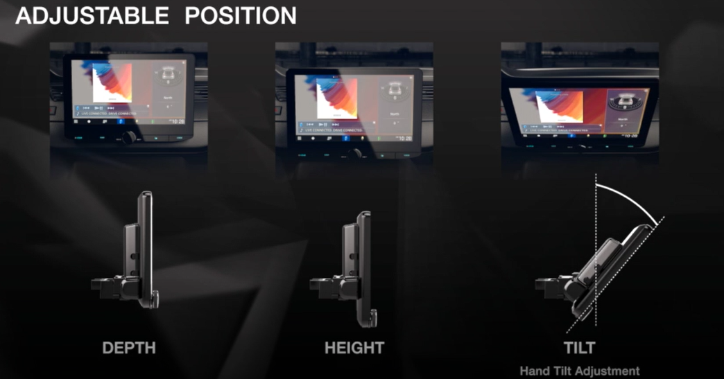 Fully adjustable display allows you to change the depth, height and angle for easy vehicle fitment.