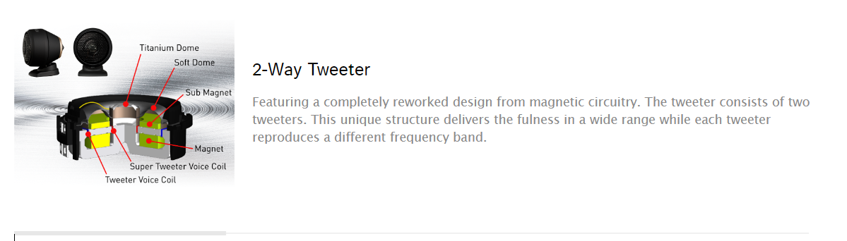 XS-series ultra-high grade speaker that deliver high density realistic sound and a spatial sound impression. The new 17cm component speaker KFC-XS1704 are precisely designed for High-Resolution Audio by using High Rigid Glass Fiber Diaphragm, Magnietic Circuit with Aluminum Ring and Phase Correcting Diffuser. High-Res Sound is Refined Further with 2-Way Tweeter.This unique 2-way tweeter creates a wide range of sound as each of the 2 tweeters reproduces a different frequency band delivering clarity and fullness.