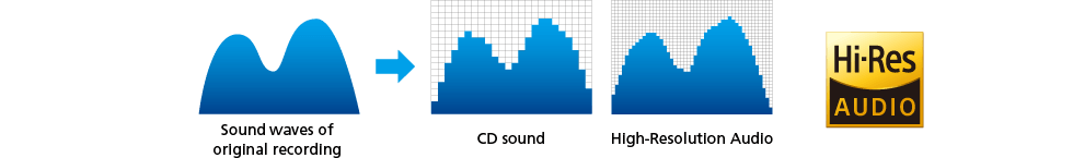 You can enjoy playback of 96kHz/24bit audio which contains about 3 times the musical information of music CDs (44.1kHz/16bit), or even 192kHz/24bit High-Resolution Audio files with their approx. 6.5 times data volume. With high sound quality approaching the original master recording itself, you will experience the presence and ambience of a tune the way CD simply cannot.