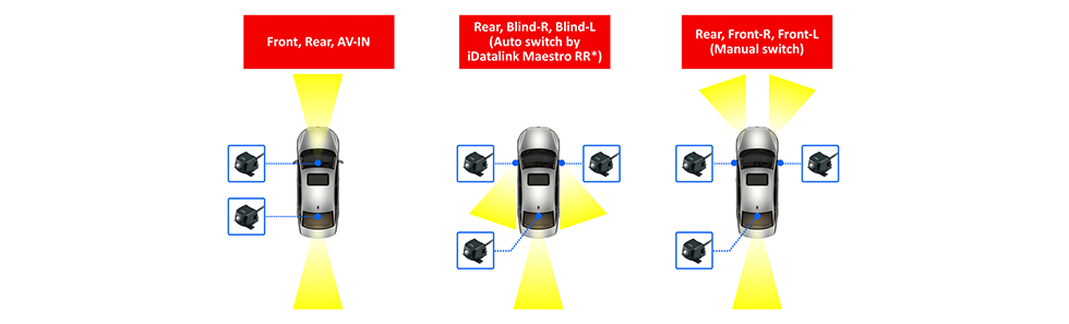 Enable users to add a reverse (rear facing) camera and an additional 2 front or blind-spot cameras, further enhancing driver safety and convenience.