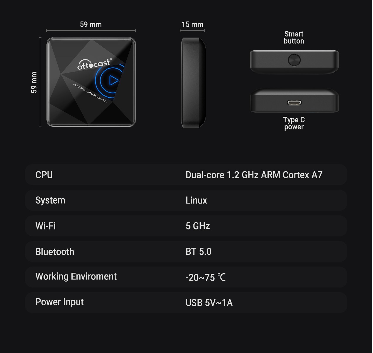 OTTOCAST U2 AIR Pro Wireless CarPlay Adapter