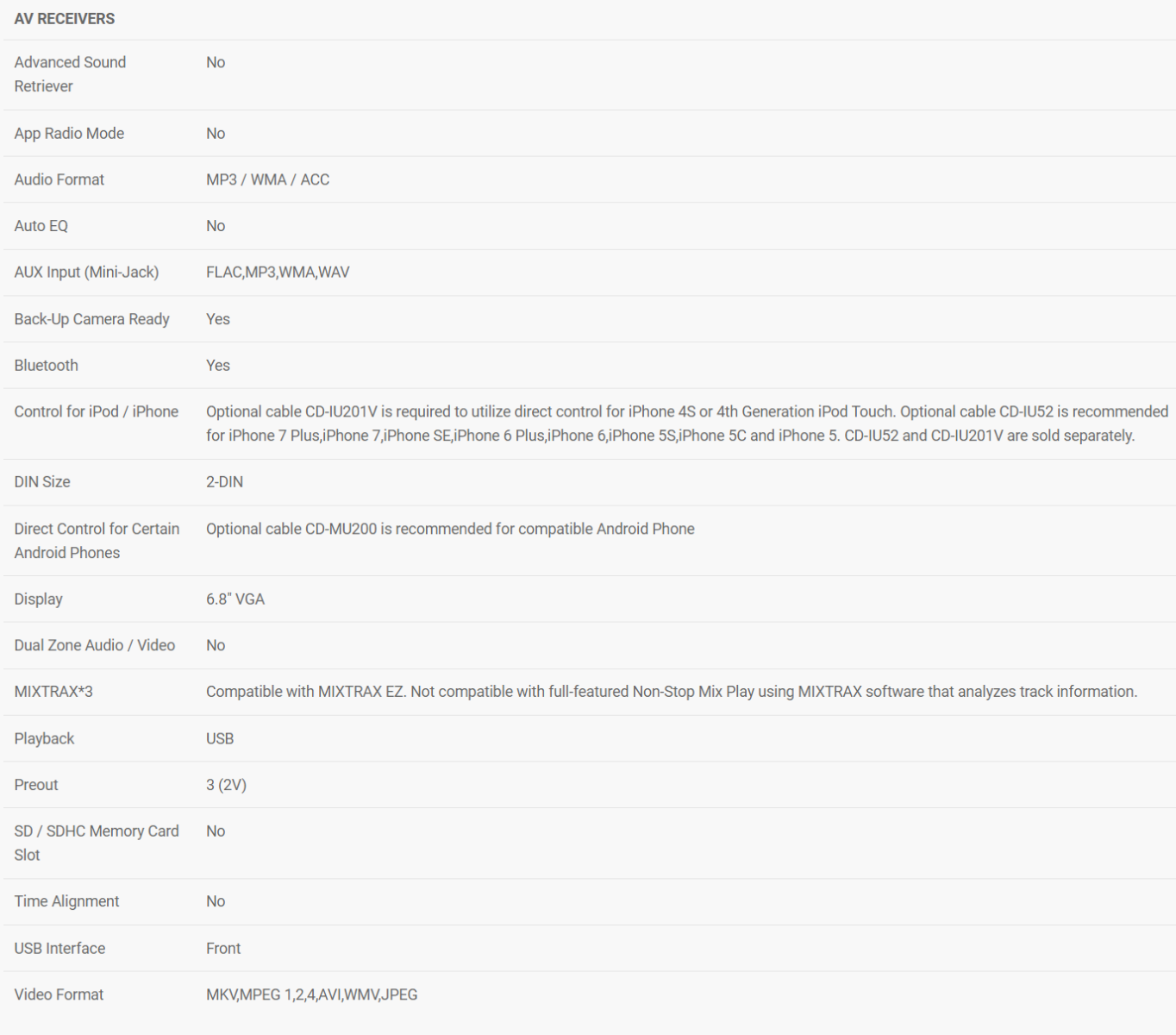 This car multimedia receiver offers FLAC file* playback capability at up to 48 kHz/24 bit high resolution CD-quality audio playback. It is also loaded with audio settings to enhance your music listening experience including a 13-band EQ with slope adjustments, time alignment, three-way network mode, auto EQ, Pioneer’s proprietary Sound Retriever AIR, and high voltage preouts. *For the files stored in USB thumbdrive.