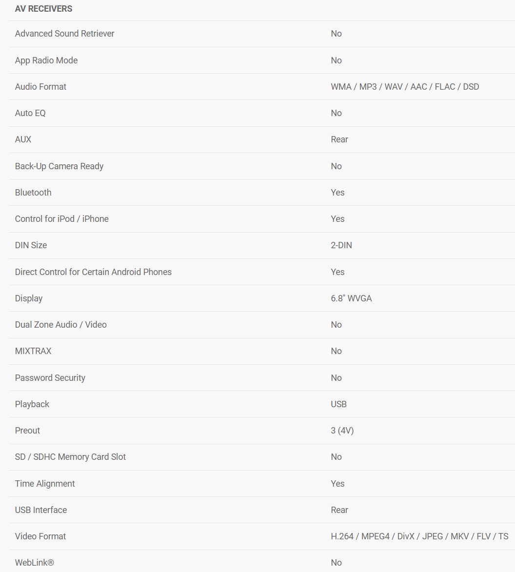 In-Dash Double-DIN Multimedia AV Receiver with Short Chassis and 6.8" Capacitive WVG Touchscreen Display,Built-in Wi-Fi,Apple CarPlay,Android Auto,Built-in Bluetooth® and Full HD Video Playback from USB Devic