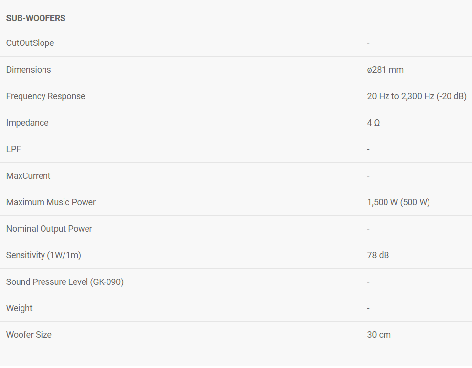 30 cm (12") A-Series Component Subwoofers (4 Ω Dual Voice Coil Type)