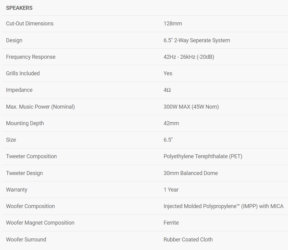 Our TS-G160C-2 speaker package is an excellent choice to replace your factory speakers. Handling 300 watts max. power (45 watts nominal) the TS-G160C-2 speaker package features Pioneer’s extremely strong and lightweight IMPP™ composite cone woofer, for improved sensitivity and reduced distortion.