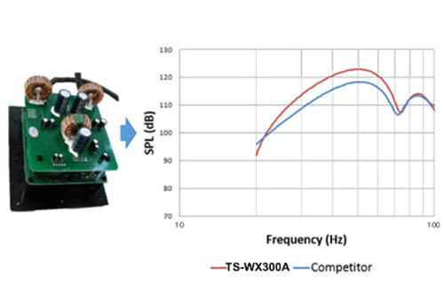 Built in AMP Pre-loaded Subwoofer enables to enjoy a high quality bass sound easily in a car. High sound quality operational amplifier NJM 4580 is set for analog circuit. Therefore, this model are able to reproduce a high quality bass sound with built-in amplifier.