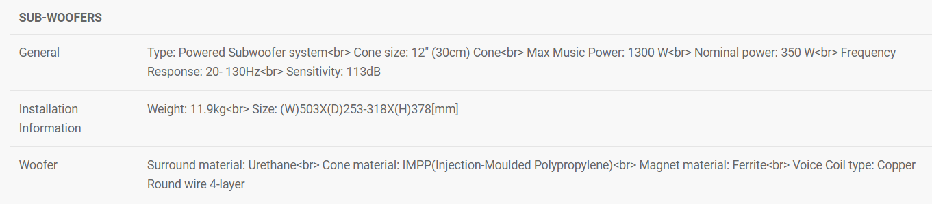 The TS-WX300A features a strong and lightweight IMPP™ (Injection-Moulded Polypropylene) Composite speaker cone, that provides solid and rhythmical bass. It also features a Class-D amplifier that is built into the side of the enclosure, amplifying the bass to high volumes, but also making it easy to install as it can save space and installation time. The Class-D amplifier also has various settings ensuring the user can get the type of bass they want, depending on their own taste in music.