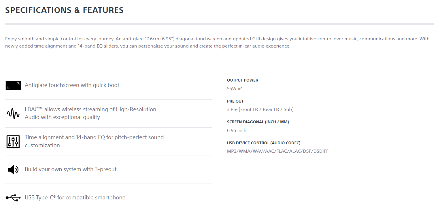 Enjoy smooth and simple control for every journey. An anti-glare 17.6cm (6.95") diagonal touchscreen and updated interface design give you intuitive control over music, communications and more. Expanded wireless connectivity, plus time-alignment and a 14-band EQ, allow for even more personalisation and the perfect in-car audio experience.