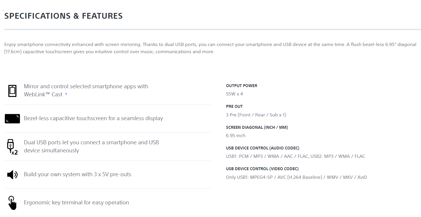 SONY XAV-AX5500 6.95” (17.6cm) Bluetooth® Media Receiver with WebLink™️ Cast